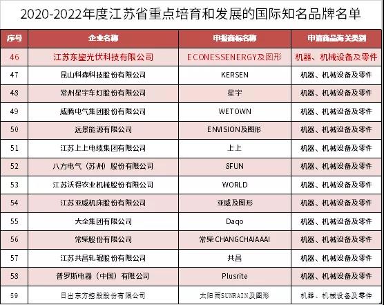 近日,江苏省商务厅发布了关于2020-2022年度江苏省重点培育和发展的国际知名品牌名单的通知,东鋆光伏凭借良好的国际化品牌与口碑入选其中。